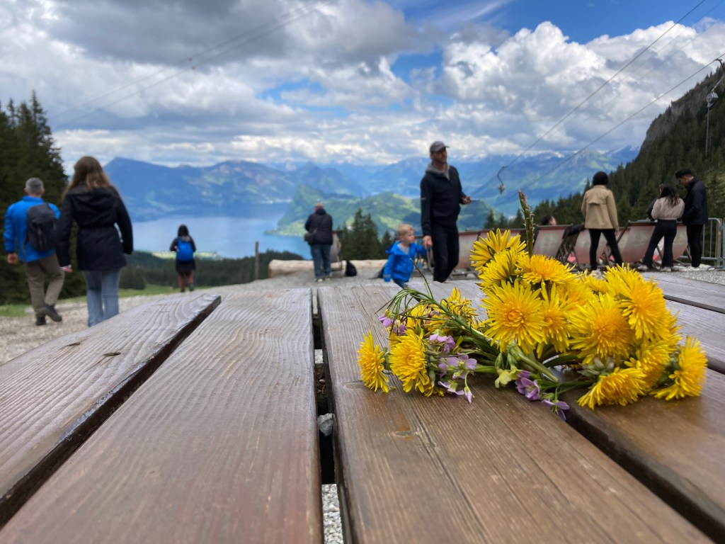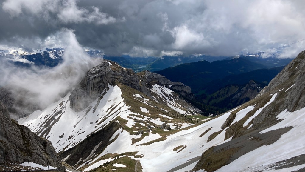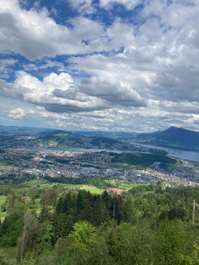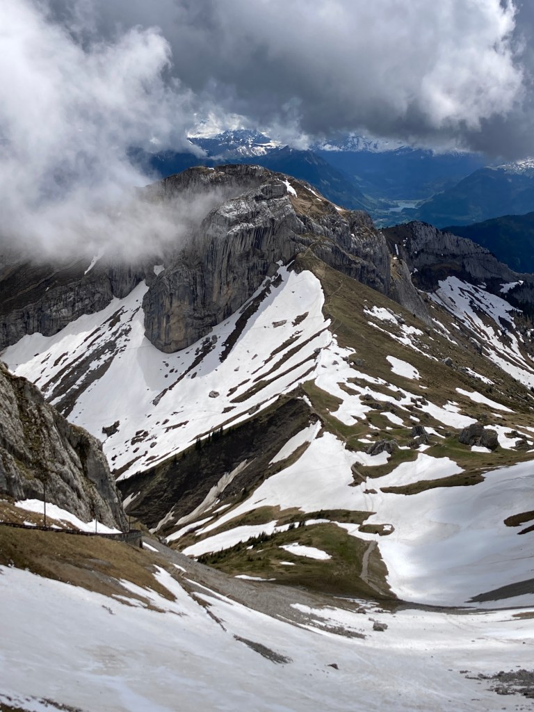 Our last full day in Switzerland arrived too soon. After breakfast, because the weather was supposed to improve, we made the decision visit Mt. Pilatus, which is Lucerne’s very own mountain, that on a clear day offers views of 73 Alpine peaks. We didn’t choose the most adventurous way to the top which included a bus ride to a boat ride to a cogwheel train ride! We chose instead to drive to Kriez and take the aerial car ride and then transfer to a gondola to reach the top.