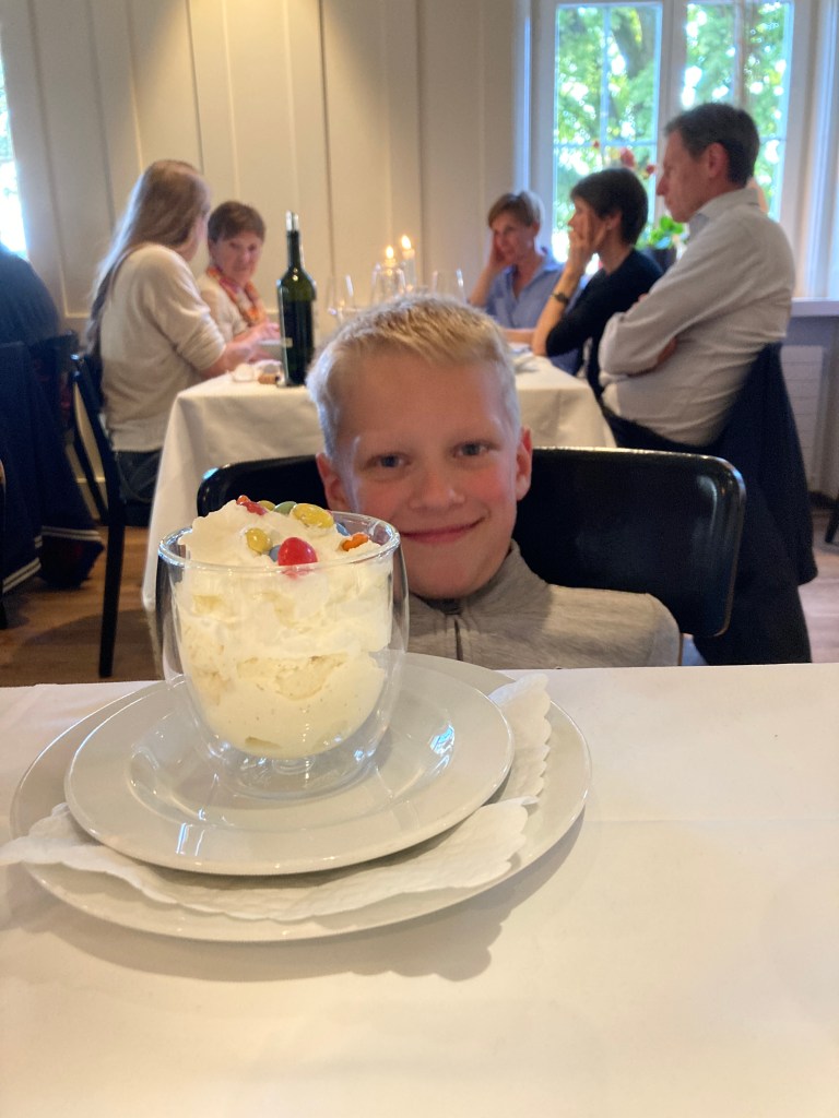 We rounded up our stay with a lovely dinner at Brasserie Löwen Am See. I tried a delicious local char and Ryan opted for a mild vegetable curry with lentils. After dessert, Ryan and the kids declared that they were tired.