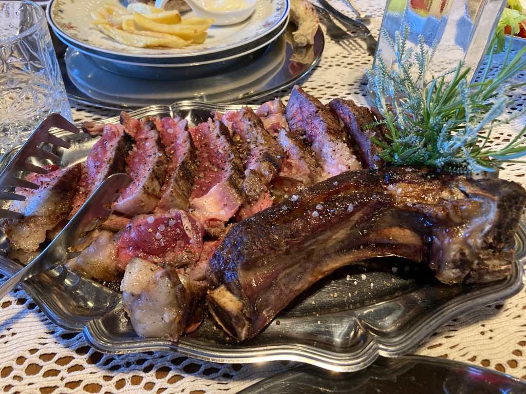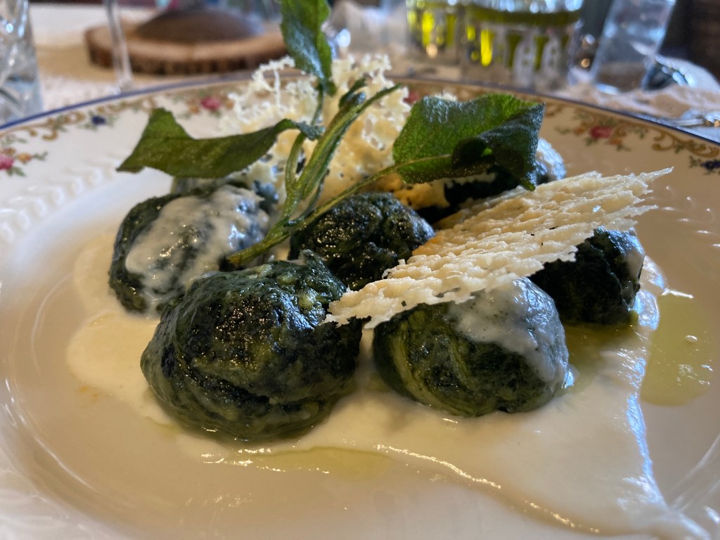 Spinach and ricotta “meatballs”. Fiorentine steak. Pasta that made my daughter’s eyes roll back in her head in delight.