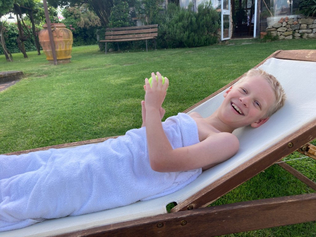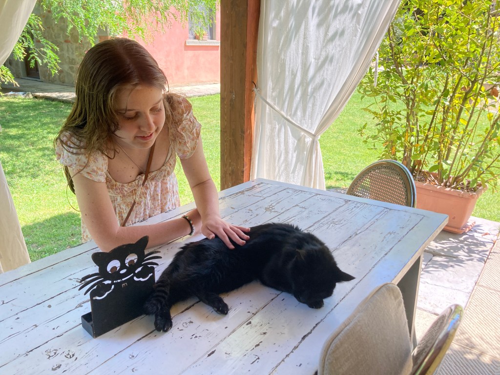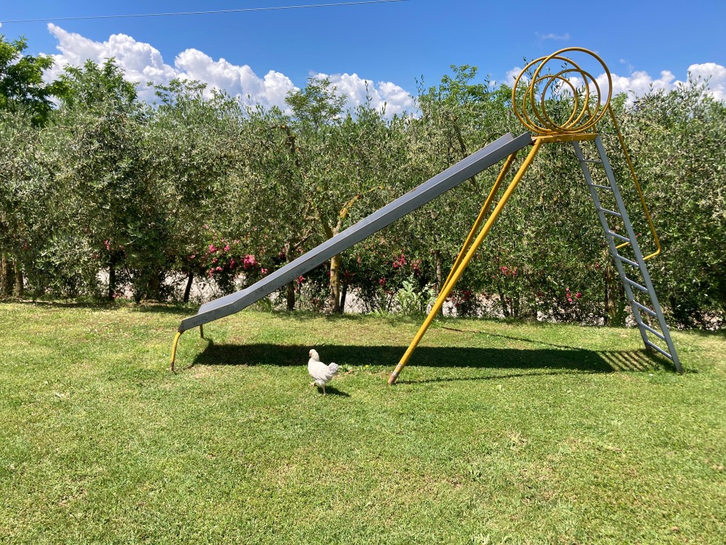 We took this day first day off in Tuscany off as we had been going non-stop since our arrival in Switzerland over a week prior. I joined Sebastian in the pool and we played ball with Milo (Meeelo in Italian), the resident springer spanial pup who loved our attention. Mira found endless fun picking up the chickens and awkwardly holding them out in front of her and visiting with all the cats.