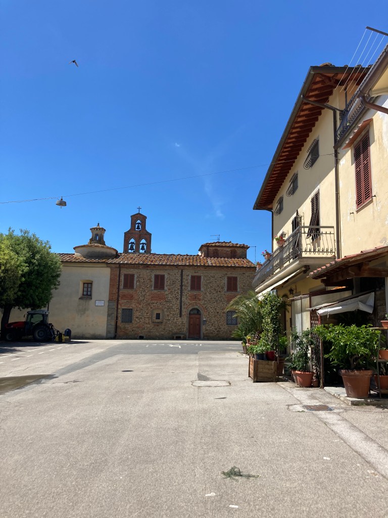 Ryan and I left the kids to rest in the afternoon and we explored the commune of Terranuova Bracciolini by taking a lovely country walk to Traiana, a charming old village between Arezzo and Valdarno (the valley of the Arno river). Upon our approach into the village we have a view of the lovely and interesting bell tower of Chiesa dei Santi Fabiano e Sebastiano. We saw locals outside watering plants and witnessed touches of modern lives. And then . . . it was time to eat again!